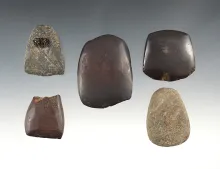 Set of 5 Miniature Celts made from Hardstone and Hematite. The largest is 2 1/8". |