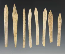 Set of 8 Chinese Arrow Points made from well patinated bone. Largest is 3 7/16". |