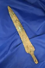Very large 14 1/4" heavily patinated Bronze Lance Head from Luristan. |