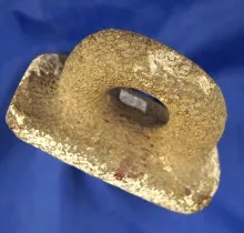Well styled 5 3/8" Pueblo white wash trowel found in Arizona with some staining on bottom. |