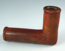 Ex. Perino/Museum! Catlinite elbow pipe - highly patinated with original wood stem. |