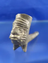 7 1/2" nicely crafted clay Iroquois Pipe with a human face found in New York. | NEW YORK | 130.00 |