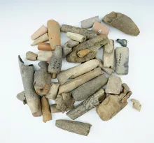 Large group of assorted clay artifact sections, mostly pipes, found at various sites in New Mexico. | NEW MEXICO | 45.00 | |