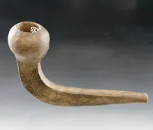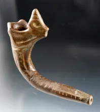 4 5/8" Long beautifully styled Horned Owl Effigy Iroquois Clay Pipe found in New York. |