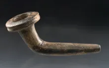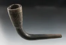 4 5/8" Iroquois Clay Trumpet Pipe - broken and mended at elbow with some restoration to stem. NEW YORK 275.00