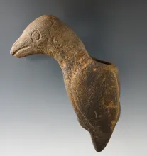 4" Long Bird Effigy Clay Iroquois Pipe featuring a red tail hawk. Some restoration to pipe bowl NEW YORK 2,100.00