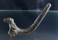 4" Long Iroquois Clay Bear Effigy Pipe found at the Dan site, near Letchworth, New York. NEW YORK 1,300.00