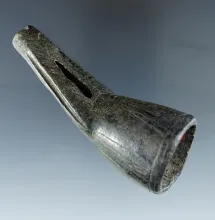 3 1/2" Black Steatite proto-Iroquois Obtuse Angle Pipe with human motifs found in New York. NEW YORK 3,200.00