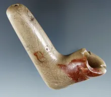 Pictured! 3 5/16" Steatite Obtuse Angle Pipe that is heavily engraved - Canadagua, Ontario Co., NY NEW YORK 900.00