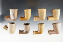 2 3/4" wide x 2" tall sandstone Elbow Pipe. Found in Madison Co., Ohio. |