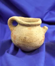 3 1/2" Strap handle Precolumbian Pot - one strap anciently broken and salvaged. |