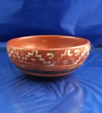 Nicely decorated 4 13/16" pre-Columbian Polychrome Bowl from Mexico - nice exterior paint. |