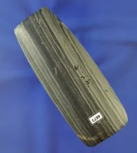 4 1/16" Fluted Tubular Bannerstone made from beautifully banded slate found in Clinton Co., Ohio. |