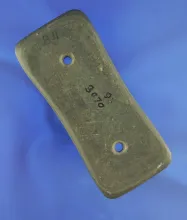 3 1/8" unique indented ends on this green banded slate Reel Gorget found in Clinton Co., Ohio. |