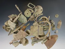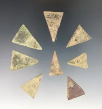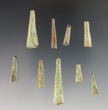 Set of 9 Brass Tinkling Cones recovered at the Dann Site, Lima, Monroe Co., New York. Circa 1655-75.