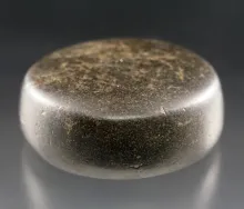 2 1/8" Drilled Quartz Discoidal that is well patinated. |