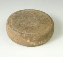 2 1/8"Fort Ancient engraved sandstone disc found in Ross Co., Ohio. Ex. Robert Converse. |