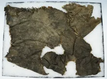 12" x 18" Framed section of ancient woven cloth. |