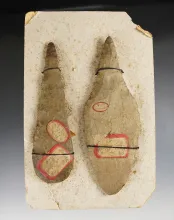 Pair of nice artifacts still attached to original cardboard. Found in Ohio. Largest is 5 1/16". |