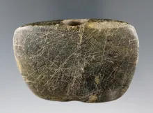 2 11/16" Hardstone "D" Bannerstone that is drilled half way but not completed. Found in Illinois. |