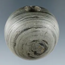 1 5/8" Archaic Fluted Ball Bannerstone made from green and black Banded Slate, found in Ohio. OHIO 400.00