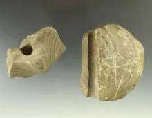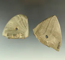 Pair of damaged Bannerstones made from slate found in Ohio. Largest is 2 3/4" wide. OHIO
