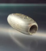 4 1/4" Raised Barrel Bannerstone found in Greene Co., Indiana. E |