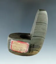 3 1/8" Archaic Geniculate made from green and black Banded Slate, found in Henry Co., Indiana. |