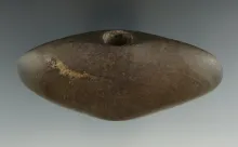 1 15/16" Archaic Ball Bannerstone made from green and black Banded Slate, Seneca Co., Ohio. |