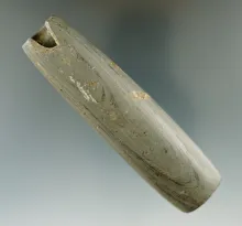 2 3/8" Tube Bannerstone made from glacial slate with nice mineral deposits on surface - Ohio. |