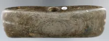 3" Archaic Geniculate made from green and black Banded Slate, found in Sandusky Co., Ohio. |