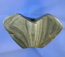 Nicely shaped 1 7/8" long flattened Ball Bannerstone - fluted on top - found in Ohio. |