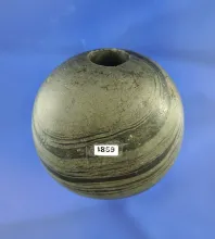 1 7/8" fluted Ball Bannerstone made from nicely banded glacial slate found in Ohio. Ex. Townsend |
