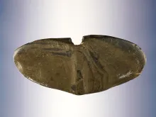 2 9/16" Wing Bannerstone half made from Slate. Found in Ingham Co., Michigan. Ex. Ramp. |