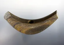 4 1/4" Tube Bannerstone made from patinated Banded Slate. Found in the Midwestern U.S. |