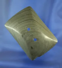 Rare style! 2 7/8" Semi Keeled Gorget made from beautifully banded slate found in Indiana. Pictured!