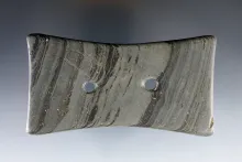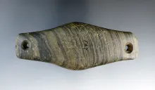 3 15/16" Hopewell "Bowtie" Gorget made from gray and black Banded Slate. Found in Ottawa Co., Ohio. |