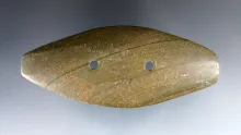3 7/8" Glacial Kame Gorget with "worm tracks". Found in Hardin Co., Ohio. Ex. Herman Cull Collection. |