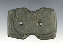 2 5/8" Hopewell Reel Gorget made from Banded Slate. Found in Ohio. Ex. Clifford Bauer. |