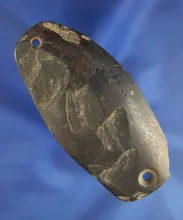 3 7/8" rare style 3 Hole Gorget made from banded slate found in Ohio. OHIO 150.00