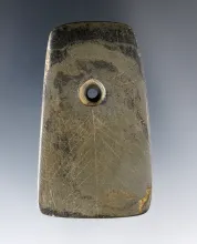 Fine 3 3/16" Trapezoidal Pendant found in Holmes Co., Ohio. Made from Banded Slate. |
