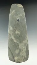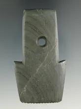 5 3/4" Hopewell Trapezoidal Pendant made from green and black Banded Slate, found in Cass Co., Michi