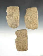 Set of 3 Midwest 3/4 Groove Axes made from patinated Hardstone. The largest is 3 1/8". |