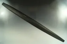 4 9/16" black slate Elliptical Bar Atlatl weight found in the Midwest. |