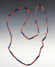 20" Strand of red and blue tubular beads. Recovered at the Dann Site in Lima, Monroe Co., NY. NEW YORK 135.00