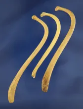 Set of three raccoon penis bones found on a site in Kentucky. Largest is 3 3/4". |