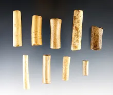 Set of 9 Bone Beads in good condition. Found in New York. The largest is 2 1/8". |