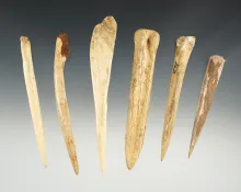 Set of 6 nicely made Bone Awls found in Tennessee. The largest is 5". | TENNESSEE | 95.00 | |