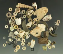 Set of Hohokam beads and pendants made of various shell and stone materials - Cibolo Co., NM. |