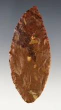 3 1/4" Archaic Point that is steeply beveled. Found in St. Francis Co., Missouri. Ex. Bushey. |